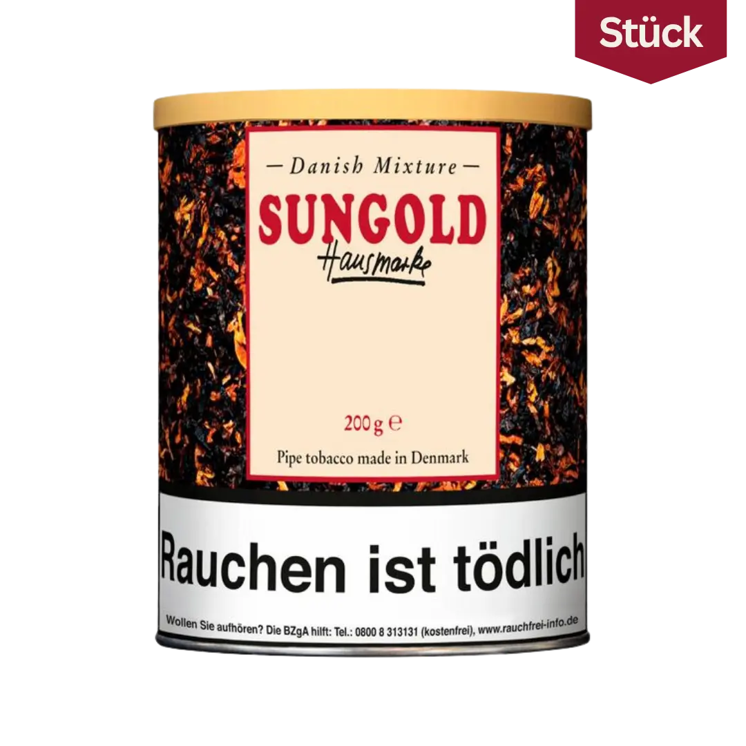 Danish Mixture Sungold (Vanille) ist hergestellt aus sonnengereiften Virginia-Tabaken mit doppelt fermentiertem Black Cavendish, versetzt mit einer zarten Vanillenote.